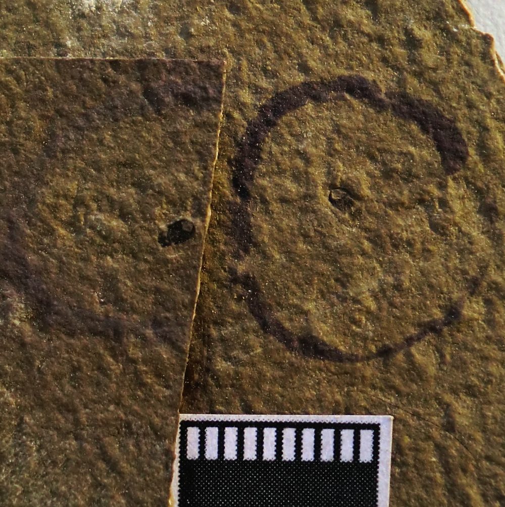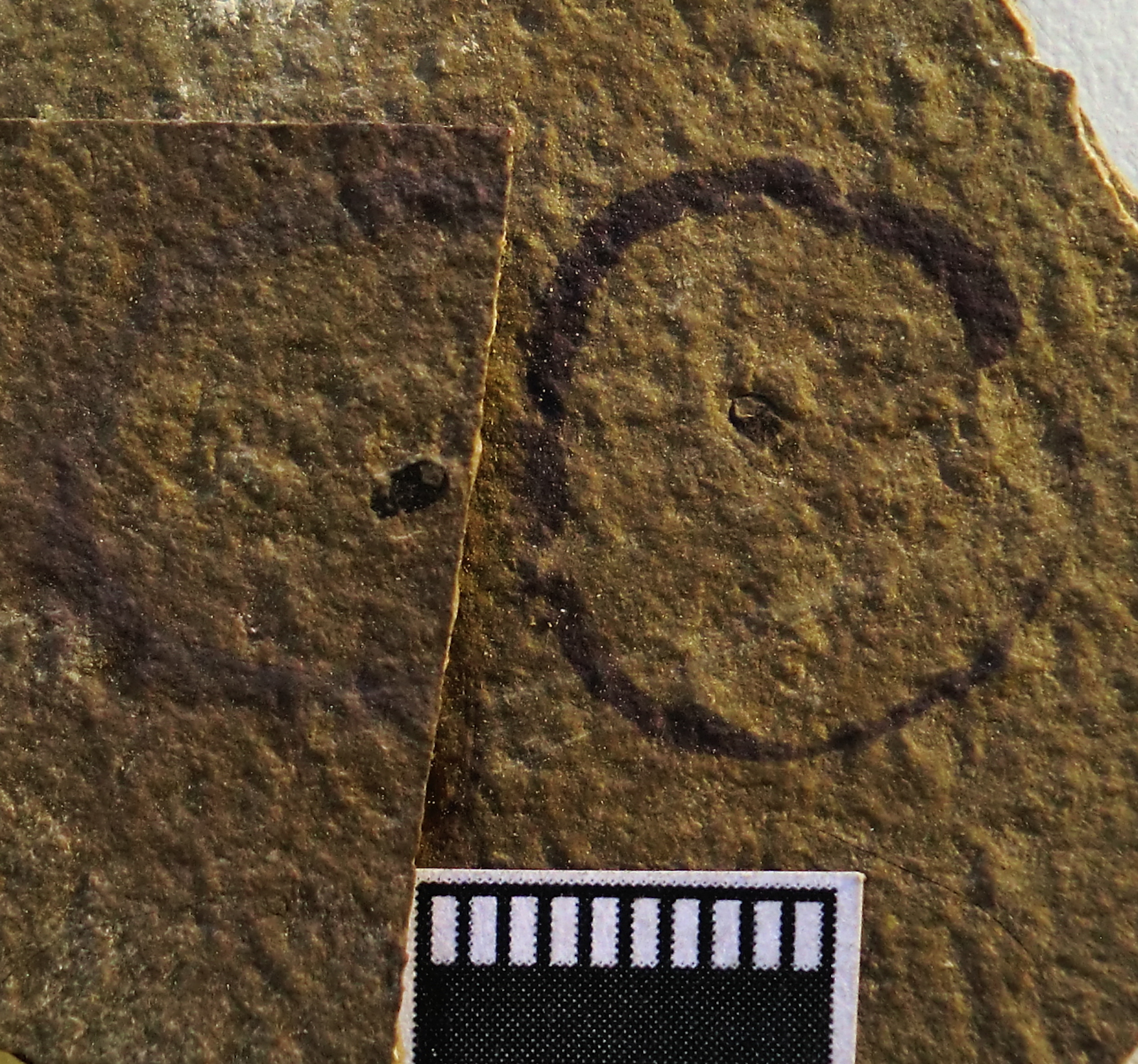Espècimen parcialment cobert per matriu en vista ?dorsal